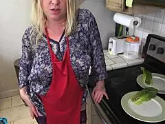 Milking Stepson with Big Natural Tits in Kitchen Before Date