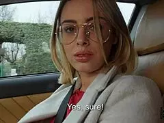 Секси блондинка не спира да флиртува с инструктора си в колата