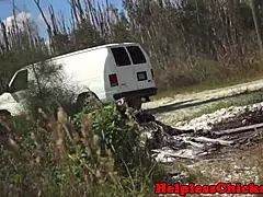 蒸し暑い4人組セックス、ホーニーなブロンドたちがディープスロートして車内で中出し。