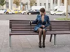 Femme d'affaires exhibe sa lingerie en rue sans jupe ni culotte