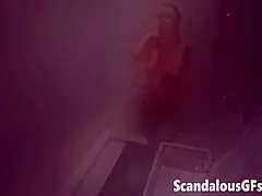 See my adorable girlfriend enjoy a relaxing steam shower in the bathroom