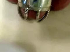 Masturbating in chastity belt with vibrator