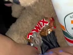 Imagina a linda europea 18+ en pantimedias viendo porno en TV mientras se mete dedos en coño peludo close-up