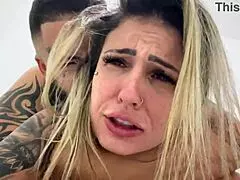 brunette virgin anal screams as he barebacks wet ass deepthroat gagging in bedroom