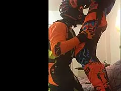 i uh love sucking that gay motocross cock in fetish costume blowjob