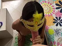 After shower, she gets a quick blowjob and cum in pussy
