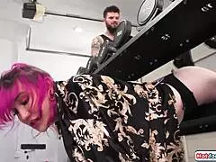 oh man, my cute crossdresser couldn't hold back with that married client and jumped in to fuck too