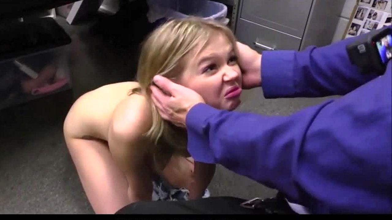 I'm a cute tiny 18+ blonde teen caught shoplifting, and the officer gives me rough sex with multiple orgasms.