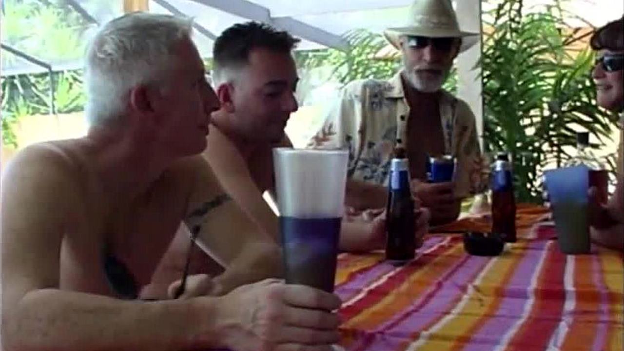 Dixies trailer park pool bar slut gets banged in gangbang with squirting cum and pierced nipples action outdoors! 💦🍆 Who's joining the fun at the bar?