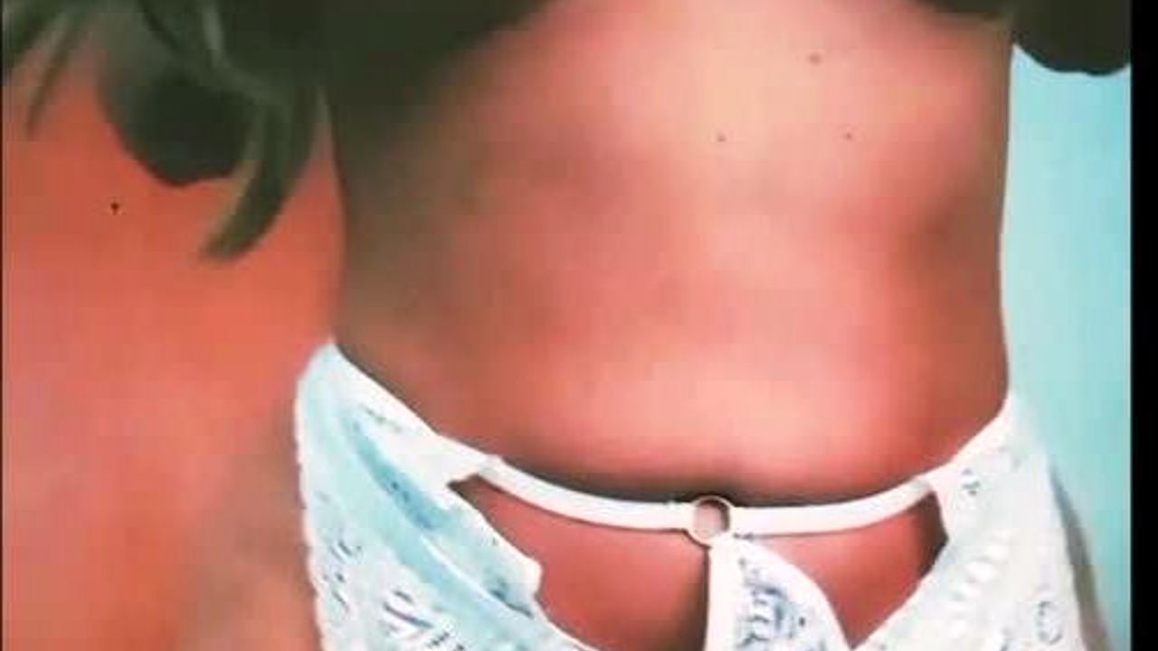 Girl explores her body sensually with fingers.