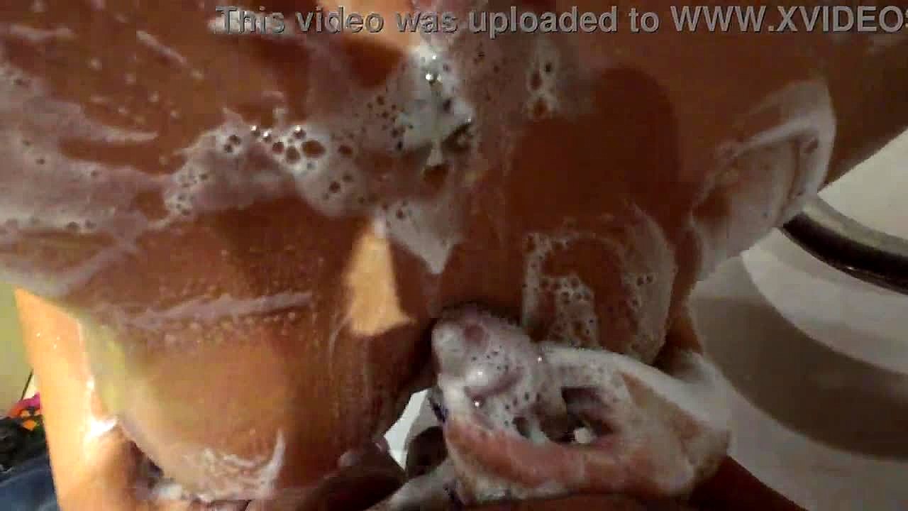 Hot amateur wife delivers pov shower titsjob with perfect natural boobs cumming close-up!