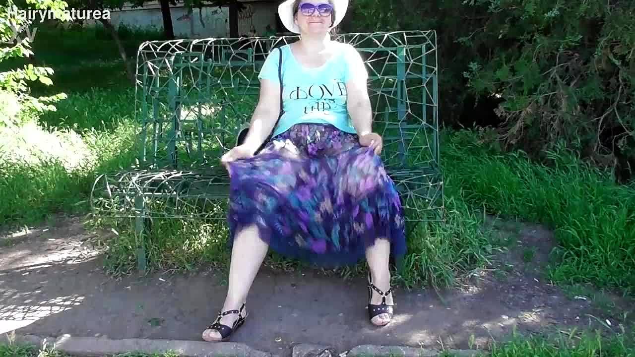 Joder, estoy meando a lo grande en el jardín público con mi coño maduro peludo