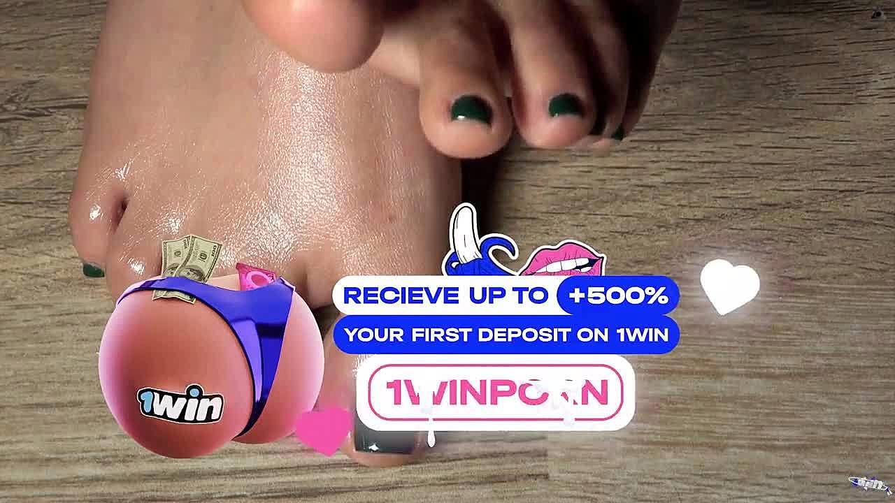 Close up on my green nailed toes perfect for your secret fetish cravings