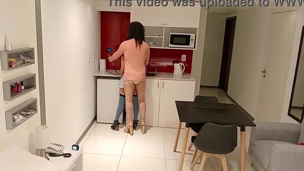 Petite Latina rousse exhibe son gros cul en cuisine, sans culotte ni soutif